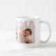 Create a keepsake photo collage coffee mug for a grandmother with 3 pictures, the title GRANDMA in editable blush pink with a modern handwritten script with hearts typography I LOVE YOU design overlay in gray and personalized with your custom text accented with hearts. CHANGES: The personalized text font style, color, size and placement as well as the GRANDMA graphic title color and background color can be changed in the EDIT menu. ASSISTANCE: For help with design modification or transfer, contact the designer via Zazzle Chat or email makeitaboutyoustore@gmail.com.