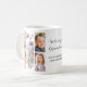 Grandma photo collage coffee mug. Replace the photos with your own and change the text. 4 photo collage. Same photos on both sides of the mug. Pretty wildflower floral in centre of photos. Script and text is in black. Mug is personalized with names.