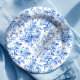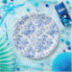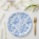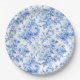 Grandmillennial Blau Toile Rosen Florales Papierta Pappteller