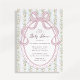 The ornate bow illustration paired with the classic floral pattern gives this invitation a nostalgic and elegant feel. Ideal for garden parties, spring baby showers, floral themed celebrations, and grandmillennial style events.