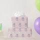Dieses Weihnachtsgeschenk-Wrap hat einen Schneemann mit blauem Damast Körper auf einem rot-rosa Hintergrund.