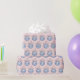 Dieses Weihnachtsgeschenk-Wrap hat einen Schneemann mit blauem Damast Körper auf einem rot-rosa Hintergrund.
