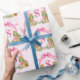 This Christmas gift wrap has a crest with leopards wearing wreaths with a hot pink monogram initial. You can personalize with  your initial.
