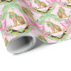 This Christmas gift wrap has a pink bow Christmas swag trellis pattern with leopards wearing wreaths.