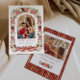 Celebrate the season with timeless elegance and a touch of Grandmillennial charm with this beautifully detailed Christmas photo card. An arched photo frame is surrounded by a ribbon-wrapped garland of winter florals, pinecones, and greenery, creating a classic holiday look accented by a luxurious red and gold bow. The graceful arch shape adds a soft, romantic touch, perfectly complementing the card’s vintage-inspired aesthetic. Finished with a festive striped back design, this card blends traditional beauty with modern refinement — a warm and sophisticated way to share your holiday greetings with loved ones.