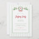 Diese Weihnachtszeit-Party Einladung hat ein prächtiges, großtausendjähriges Design mit einem Weihnachtskranz mit einem Monogramm Brief oben. Die Vorderseite und die Rückseite haben ein koordinierendes galoppierendes Muster.