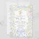 Grandmillennial-Rosa-Gingham-Baby-Shower-Einladung, Mädchen-Baby-Shower, Vornehm-Südstaaten-Baby-Shower, Streusel-Baby-Shower, Einladung mit blauem Band
