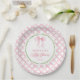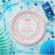 Grandmillenniale Babydusche Teller mit rosa Bögen und Vintagem Wasserfarben Gitterdesign verleihen jedem Baby Duschfest zeitlosen Charme und Eleganz. Diese personalisierte Platte ist mit einem weichen pastellrosa Bogen-Muster über die gesamte Oberfläche verziert, ergänzt durch einen grünen Blattkranz, der die Mitte umgibt, wo ein großer Wasserfarbenbogen einen klassischen Brennpunkt schafft. Die anmutige Schrift und die traditionellen Designelemente erinnern an ein ausgeklügeltes, heiß inspiriert Aussehen, das sich perfekt eignet, um eine Dusche im Stil der Großtausend zu beherbergen, zu schlucken und zu sehen oder zu sprinkle. Diese Teller sind nicht nur als funktionales Geschirr, sondern auch als wunderschöne Pfannkuchen oder dekorative Elemente für Desserttische, Orte oder Party-Displays einsetzbar. Das zarte Gleichgewicht von Aquarelltexturen, rosa Farbtönen und botanischen Details macht dieses Design zu einem idealen Ort für weibliche, florale und traditionelle Babymädchen. Ob Sie eine Babydusche im Tee-Party-Stil oder eine Gartenfeier planen, diese stilvollen Teller erheben Ihr Dekor mit poliertem Detail und persönlichem Charme.