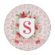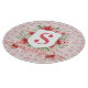 Dieses Weihnachts-Unterdeckchen-Design hat ein preppy grandmillennial Design mit einem floralen Wappen, umgeben von Beeren mit einem monogrammierten Buchstaben in der Mitte.