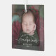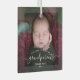 Help them celebrate their first grandchild with this beautiful modern keepsake ornament. The white text reads "Our first Christmas as grandparents," with the word "grandparents" in elegant handwriting script with flourishes before and after. Easily replace the sample image with your favorite photo of the new baby, and add his or her name and the year.