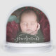 Help them celebrate their first grandchild with this beautiful modern keepsake snow globe. The white text reads "Our first Christmas as grandparents," with the word "grandparents" in elegant handwriting script with flourishes before and after. Easily replace the sample image with your favorite photo of the new baby, and add his or her name and the year.