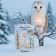 Soft and serene, this hand-painted watercolor captures a Snowy Owl resting on a winter branch beside a layered vanilla birthday cake topped with gentle purple frosting and glowing candles. Ivy-covered trees in the background add a quiet January charm, making this a sweet and thoughtful birthday scene created especially for a grandson who loves birds, nature, and peaceful winter moments.