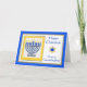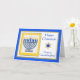 Happy Chanukah Liebe Grandtochter, zeitgenössische Menorah mit blauen Kerzen, Papier Grußkarte. Digitale Illustration mit einer beleuchteten Menorah und einem Stern von David. Art, Bild und Vers Copyright © Shoaff Ballanger Studios, 2024.
