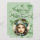 Das schönste dunkelhaarige Mädchen, das eine grüne Toilette mit Blätter trägt, um Ihrer Enkelin eine Weihnachtskarte zu geben. Der Rücken wünscht eine wunderschöne Enkelin zu Weihnachten von Großeltern