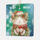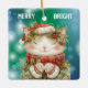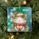 Hier ist ein hübscher Weihnachtsschmuck für die besondere Enkelin, Tochter oder Nichte! An der Vorderseite ist eine hübsche Katze mit roten Musterhut, Schal und Fäusten gekleidet. Die Katze hält heilige Zwiebeln mit roten Beeren. Ein grüner und blauer Hintergrund enthält weißen Text, der "MERRY BRIGHT" sagt. Die Rückseite des Ornaments hat den gleichen Hintergrund wie Ihr eigener Text. Es ist personalisiert für sie und leicht für ein Geschenk von jedem angepasst; ändern Sie einfach den Text.