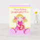 Whimsical Girls ragdoll gemalt Geburtstagskarte, ideal für ein kleines Mädchen Geburtstag. Niedlich rosa, rote, lila, gelbe und weiße Farben. Personalisieren Sie sich mit dem Namen und Alter Ihrer Enkelin. Original Aquarellmalerei und Design von Sarah Trett für www.mylittleeden.com auf Zazzle.