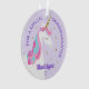 Diese personalisierte Enkeltochter Unicorn-Ornament zeichnet sich durch ein niedliches whimsical Einhorn-Design mit Blume und Imitaten Gold Glitzer Sterne. Personalisieren Sie den Text auf der Vorder- und Rückseite.