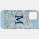 Dieses Monogramm-Design, mit einem quadratischen, blauen Rahmen, umgeben eine Mischung, Muster von Farben, in blau, hellblau, gelb, weiß, grau, schwarz simulierend, Granit Marmor.