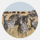 Grants Zebra Classic Round Sticker. Eine Herde von Grants Zebras auf der Savanne. Mara Triangle - Maasai Mara National Reserve, Kenia, Afrika. Foto von Javi Lorbada.