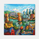Diese klassische Vancouver-Szene ist das, was Sie sehen, wenn Sie die Granville Street Brücke überqueren. Es umfasst die Bergkulisse, ein wenig den Stanley Park, den Fährhafen Granville Island und die hübsche Deko Burrard Street Brücke, die von Booten und Gebäude umgeben ist. Ich wollte, den Kontrast der einheitlich gestalteten und reflektierenden Gebäude in der Innenstadt gegenüber der neon-hellen ehemaligen industriellen Gemeinde Granville zu betonen. Die Gebäude in der Innenstadt scheinen immer groß und wild, aber alle sehr ähnlich, wie ein Feld von Blume, die sich zur Sonne drehen, während Granville Island alles verrückt-unregelmäßig und hell ist.