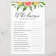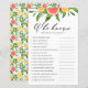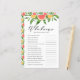 Wer kennt die Braut am besten? Fügen Sie diese lustige und spielerische Brautparty-Spielkarte zu Ihrer Veranstaltung hinzu. Es ist mit Aquarellgrapefruits, Orangen, Grünpflanzen und Babyatmen ausgestattet. Personalisieren Sie dieses Zitrus Brautparty Spiel, indem Sie Ihre eigenen Fragen hinzufügen. Dieses Grapefruit-Brautparty ist ideal für Brautpartys im Sommer.