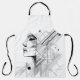 Eine moderne Schürze mit einem markanten geometrischen Gesicht aus klaren Linien und abstrakten Formen. Der flache, monochrome Grafikstil wirkt zeitgemäß und künstlerisch, ohne zu technisch oder dunkel zu erscheinen.