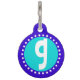 Dieses runde Begleiter-Tag zeigt einen grafischen Kleinbuchstaben G, der auf einem königsblauen und aqua-Hintergrund beginnt und von einem Kreis von weißen Punkten umgeben ist. Vollständig anpassbar! Fügen Sie die persönlichen Daten Ihres Hundes auf der Rückseite hinzu, oder löschen Sie, wenn Sie es vorziehen.
