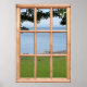 Gras, Blätter und Meerblick aus einem Fenster Poster