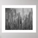 Das Poster wird mit einem Schwarz-Weiß-Foto aus Grasblättern mit Tau-Tröpfchen gezeigt. Passen Sie dieses Objekt an oder kaufen Sie, wie es ist. Bild