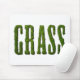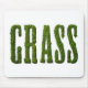 Mousepad mit dem Wort GRASS. Der Text wird aus einem Foto Gras gemacht, um es so aussehen zu lassen, als würde er aus Sode geschnitten. Schönes Design für Rasenpflege oder Mähfirmen.