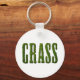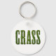 Schlüsselanhänger mit dem Wort GRASS. Der Text wird aus einem Foto Gras gemacht, um es so aussehen zu lassen, als würde er aus Sode geschnitten. Schönes Design für Rasenpflege oder Mähfirmen.