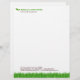 Der perfekte Briefkopf für irgendeinen beruflichen Landschaftsgestalter oder im Garten arbeitenservice. Eine üppige grasartige Grenze druckt auf der Unterseite des Briefpapiers. Ihr Handelsname wird durch ein doppeltes Blätter getriebenes Logo hervorgehoben. Verfügbar in zusammenpassenden Visitenkarten, in den Bevorzugungen und im Porto.