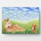 Eine kleine Garnele und ein Eichhörnchen. Eine kleine Rasenfläche lag im großen, grünen Gras. Er war ein Rotwild. Er beobachtete die Wolken sanft über den weiten Himmel schweben ... Bilderbuch Illustration aus einem Kinderbuch "Die Roten Hirsche und die Haselnüsse" - geschrieben und illustriert von Julia Doria.
