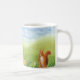 Eine kleine Garnele und ein Eichhörnchen. Eine kleine Rasenfläche lag im großen, grünen Gras. Er war ein Rotwild. Er beobachtete die Wolken sanft über den weiten Himmel schweben ... Bilderbuch Illustration aus einem Kinderbuch "Die Roten Hirsche und die Haselnüsse" - geschrieben und illustriert von Julia Doria.