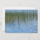Grasse, die im blauen Wasser eines perfekten Sommerhimmelspiegels auf dem Paddensee in Bellingham, Washington wachsen, schaffen ein interessantes und einzigartiges Foto.