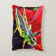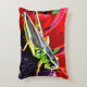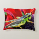 Dieses dekorative Kissen mit Akzent ist mit einem glänzenden, grünen, gelben und schwarzen Grasshopper in der lila Mitte einer Blume mit prächtigen roten Blütenblättern bestückt.