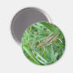 Dieser brillante Magnet zeichnet sich durch ein detailliertes Makrofoto eines kleinen grünen Grasshoppers aus, dessen braune, mottel Markierungen auf dem Gras sitzen. Auf dem Foto sehen Sie die Details der geflochtenen Beine, lange Antennen und schwarz-goldene Augen des Grashüpfers.