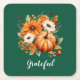 Grateful Autumn Floral Pumpkin Green Square Rechteckiger Pappuntersetzer