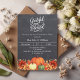 Ein Imitat rustikalen Chalkboard Hintergrund. Die Einrichtung ist mit Kürbissen und orangen und gelben Blumen geschmückt. Personalisieren Sie die Party-Details und fügen Sie sie hinzu. Text-Skript: Dankbar und gesegnet.
