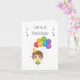 Schwedische Geburtstagskarte mit Botschaft in schwedischer Sprache (Grattis på födelsedagen, Happy Geburtstag in Schwedisch) und niedliches Mädchen mit Ballons. Meldung innerhalb der Karte "Grattis på födelsedagen".