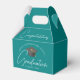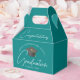 Diese modernen, aquamarinen, individuellen Senior Grade Party Vergünstigungsboxen mit Ihrem High School- oder Uni-Namen für die Klasse von 2025. Anpassen mit Ihrem geschlossen Jahr unter der eleganten handgeschriebenen Drehbuch und Grau-Grau-Kappe für große personalisierte Gastgeschenke.