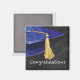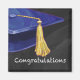 Du oder jemand, den du kennst, ist geschlossen! Ja! Lassen Sie sich von unserem stilvollen Design beglückwünschen, das unsere originale Kunst eines blauen Graduierungspapiers mit einem gelben Tassel vor einem texturierten schwarzen Hintergrund und dem Wort beinhaltet. Herzlichen Glückwunsch ganz unten. Individuelle Designs sind verfügbar.