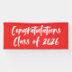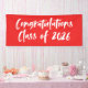 Modernes Abschluss-Banner mit "Gratulations Class of 2025" in einem weißen Pinselskript mit einem roten Hintergrund oder Farbe Ihrer Wahl. Das rote Abschluss-Banner ist so konzipiert, dass es mit unserer Abstrakten Pinselstriche Abschluss Kollektion koordiniert wird.