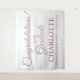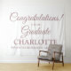 Herzlichen Glückwunsch an unsere Graduierte benutzerdefinierte Skripttypografie elegante Signatur und Graduierung Party Hintergrund. Sie können es mit Namen, Schule, Abschluss, Klasse Jahr, etc. Vollständig anpassbare Imitate Rose Goldtext, weiß solide schlichte Hintergrund. Alle Farben können bearbeitet werden. Modernes, elegantes typografisches Abschluss-Werbebanner, ideal für Kinder und Erwachsene. Geeignet für Kindergarten, Grundschule, Mittelschule, Oberschule und Uni. Dies ist eine großartige Möglichkeit, eine Abschluss-Ankündigung zu zeigen. Karo der Erholung der Kollektion für zusätzliche, aufeinander abgestimmte und koordinierende Abschluss-Geschenke, Gefälligkeiten, Party und Dekorationselemente.