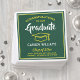 Fügen Sie eine elegante personalisierte Touch zu Uni- oder High School-Abschluss-Party-Dekorationen mit diesen maßgeschneiderten grünen, goldenen und weißen Papierservietten hinzu. Der gesamte Text ist einfach anzupassen. Das Design zeichnet sich durch einen grünen Hintergrund, eine gelbe Mörtel-Kappe, eine stilvolle moderne Typografie und handgeschriebene Schriftzeichen-Kalligrafie aus. Herzlichen Glückwunsch an den Absolventen!