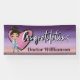 Moderne Gratulationen zeichnen sich durch einen niedlichen Arzt aus, der die medizinische Schule abgeschlossen hat. Sie hat ein großes Herz und genießt es, für andere kümmern. Schriftart im Typografiestil. Mit Monogramm mit dem Namen der Absolventen. Purpur, pinke, schwarze und blaue Farben. Imitate Gold Glitzer sehen aus. Glückwunsch zum neuen MD - Mediziner beruflich.