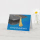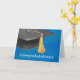 Du oder jemand, den du kennst, ist geschlossen! Ja! Lassen Sie sich von unserem stilvollen Design beglückwünschen, das unsere originale Kunst eines blauen Graduierungspapiers mit einem gelben Tassel vor einem texturierten schwarzen Hintergrund und dem Wort beinhaltet. Herzlichen Glückwunsch ganz unten. Individuelle Designs sind verfügbar.