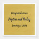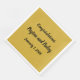 Feiern Sie Ihre Lieben, Freunde oder Kollegen mit diesen Servietten! Dem Wort "Glückwunsch" folgen die Namen Ihrer Ehrenmitglieder und das besondere Datum. Die Schrift ist in einem Schriftart mit einem Pinsel (Pinselstrich), in einem handgeschriebenen Stil, schwarz über einem goldenen Hintergrund. Nachrichten, Namen und Datum sind vollständig anpassbar. Ideal für Hochzeiten, Verlobungsfeiern oder gemeinsame Feiern!