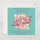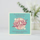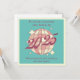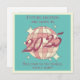 Retro-Vintage Grußkarte für ein neues geborenes Baby mit einem Diskoball mit hellrosa Farbtupfern und einem fein Vintagen "2025"-Drehbuch auf aquamarinem, blau getöntem Hintergrund.