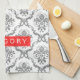 Grau auf weißer Flora Damaskus Geschirrtuch